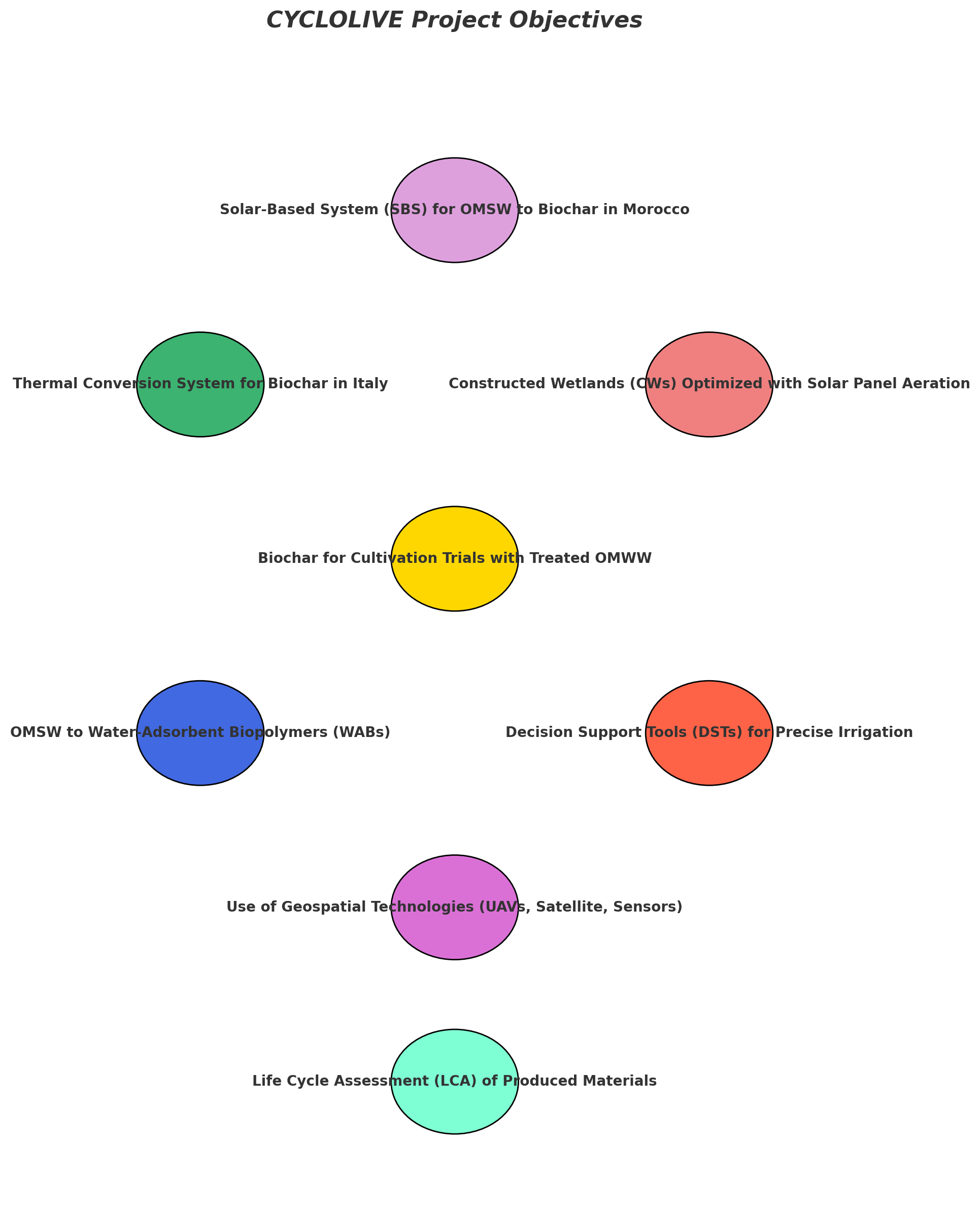 Considering the aforementioned objective, the CYCLOLIVE project aims to carry out the following activities: