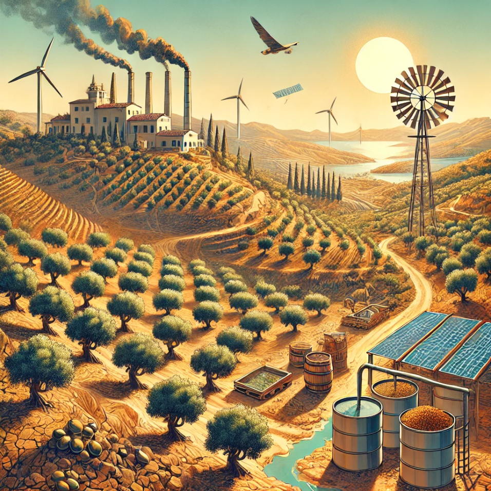 The Mediterranean region is renowned for its distinctive climate, landscapes, and diverse agricultural traditions. Nevertheless, the area confronts various interconnected challenges, including water scarcity, soaring energy costs, and unsustainable agricultural practices, such as excessive use of fertilisers and pesticides, leading to soil degradation and reduced land productivity. A comprehensive and holistic approach is necessary to tackle these issues, integrating sustainable water management, renewable energy solutions, and innovative agricultural practices. The Mediterranean region can strive toward a more resilient and sustainable future by adopting such an integrated approach. Aside from water scarcity, high energy costs, and unsustainable agricultural practices, pollution stemming from food-related activities is another significant challenge in the Mediterranean region. Among the various agricultural productions in the area, the olive oil industry stands out as one of the most prominent. Unfortunately, this industry also ranks as oneof the most polluting due to the generation of olive mill wastewater (OMWW) and olive pomace or olive mill solid waste (OMSW). These by-products possess chemical compositions that make their management and disposal highly challenging. Tackling pollution associated with olive farming necessitates the implementation of a strategy that combines the use of renewable energy sources with sustainable agricultural practices.